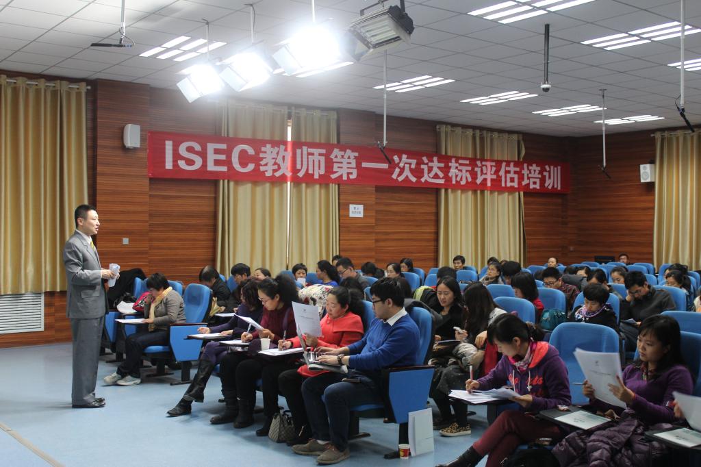 2014年11月29日下午到30日上午,由国际交流合作处承办的 ISEC教师第一次评估会议,在我校09403H成功举办。来自全国16个高校的98名ISEC教师参会,其中我校有20多名教师(已获得ISEC上岗资质教师 11名),听取了国家留学基金管理委员会东方国际教育交流中心陈京教授和张明生教授的报告。