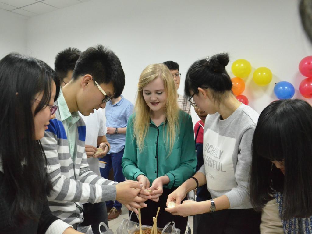 本次欢迎晚会通过中波双方学生介绍各自国家的历史、文化、景观,来增加对两国的了解。双方带来的节目活跃了现场气氛。国际教育学院的同学更是挥毫泼墨,写下“海内存知己,天涯若比邻”的佳句赠予波兰同学,表达对他们的热情。晚会以中波双方饺子文化交流结尾,同学们亲自动手做出各自国家的饺子,波兰草莓馅的饺子让中国学生大开眼界,我国各式各样的饺子也令波兰同学赞不绝口。晚会在欢乐的气氛中圆满结束。