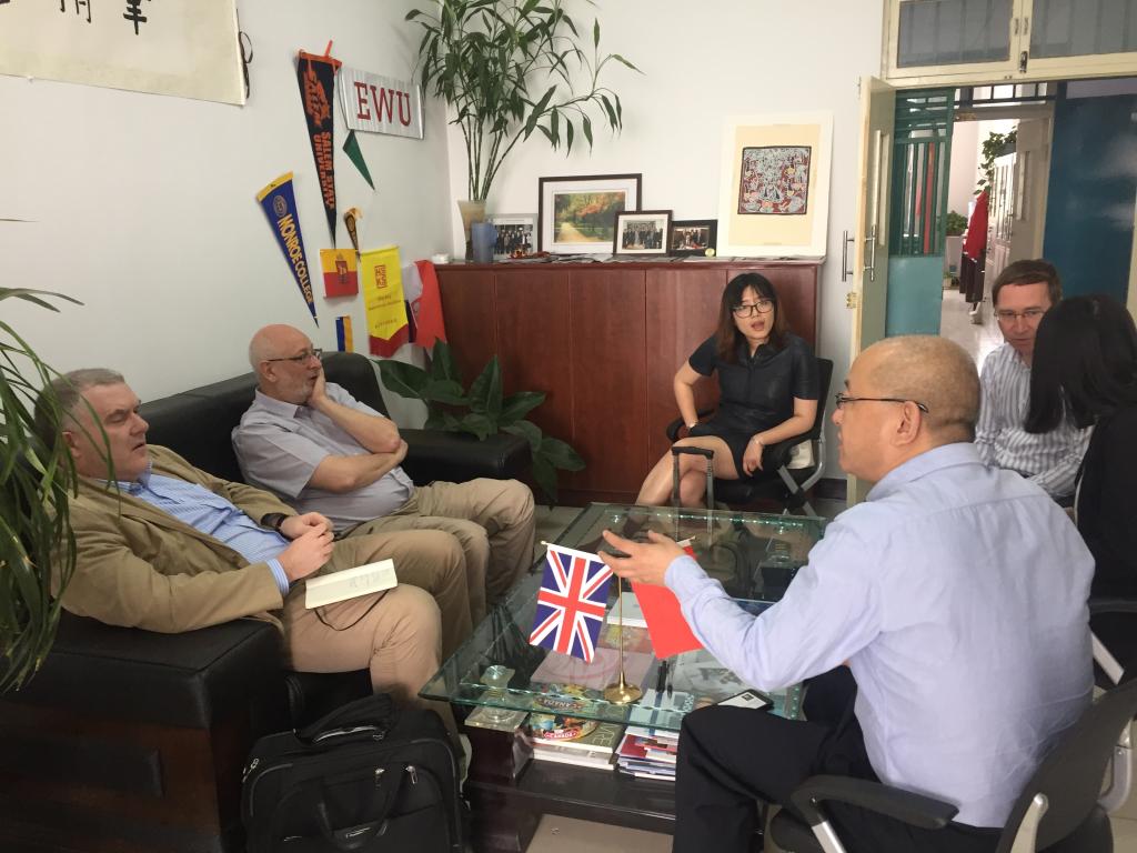 2016年6月2日,英国伯明翰城市大学(Birmingham City University)工学院副主任William Campell博士一行5人应邀来校访问。张宗胜处长在国际交流合作处外宾会客室会见了来访客人。双方详细探讨了国际教育学院机械设计制造及其自动化、电子信息工程、以及计算机相关专业的教学计划和课程描述,并研究了硕士研究生合作方案。