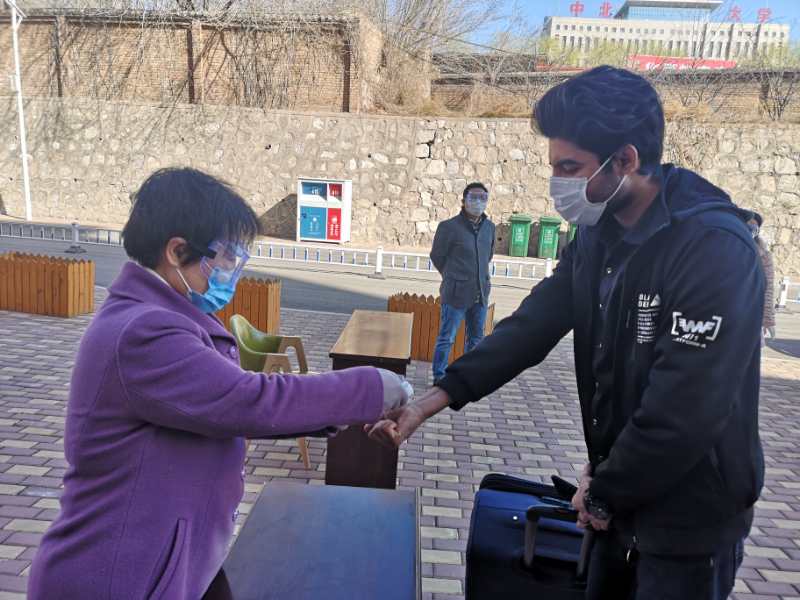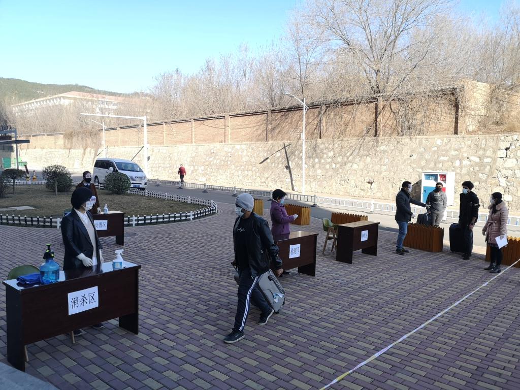 3月22日,为进一步加强疫情处置能力,检验防控预案的科学性和可操作性,为随时确保安全开学做好准备,根据学校统一安排部署,国际教育学院组织了学生报到期间疫情防控应急处置演练。演练在留学生公寓举行,设置了待检区、检测区、处置区、消杀区、报到区、入住引导区(进公寓)等六个组,从学生入校抵达留学生公寓开始,分别完成体温检测、手和行李消杀、身份核验登记和防疫物品分发、入住和隔离等流程,并对体温异常者进行复检和报告。工作人员全副武装,全程佩戴口罩,物资设备充足,整个过程严谨规范,安全可控,为顺利开学做好了准备。全体教职工和部分留学生参加演练。