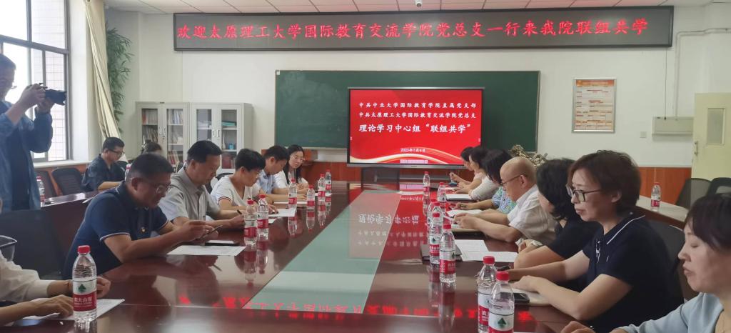 为深入学习贯彻党的二十大精神,推动学习贯彻习近平新时代中国特色社会主义思想主题教育走深走实,按照校院两级主题教育工作方案及理论学习中心组学习计划,7月4日上午,中北大学国际交流学院直属党支部与太原理工大学国际教育交流学院党总支,举办理论学习中心组(扩大)“以学奋晋 联组共学”活动。双方理论学习中心组成员、教职工党员代表等20余人参加。