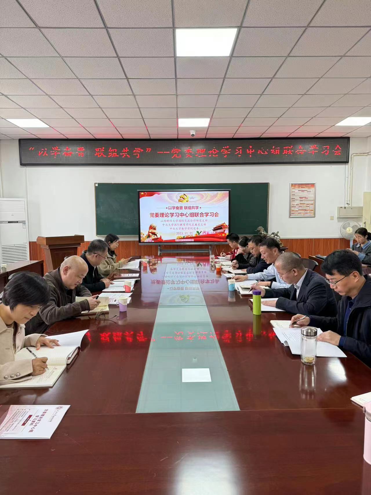 2023年11月21日下午,为深入学习贯彻习近平新时代中国特色社会主义思想,开创基层党建工作新格局,国际教育学院直属党支部与我校数学学院党委和山西财经大学国际交流合作部党支部理论学习中心组,在教学九号楼610会议室举行“以学奋晋 联组共学”活动。各中心组成员、国际教育学院各科室负责人参加学习会。