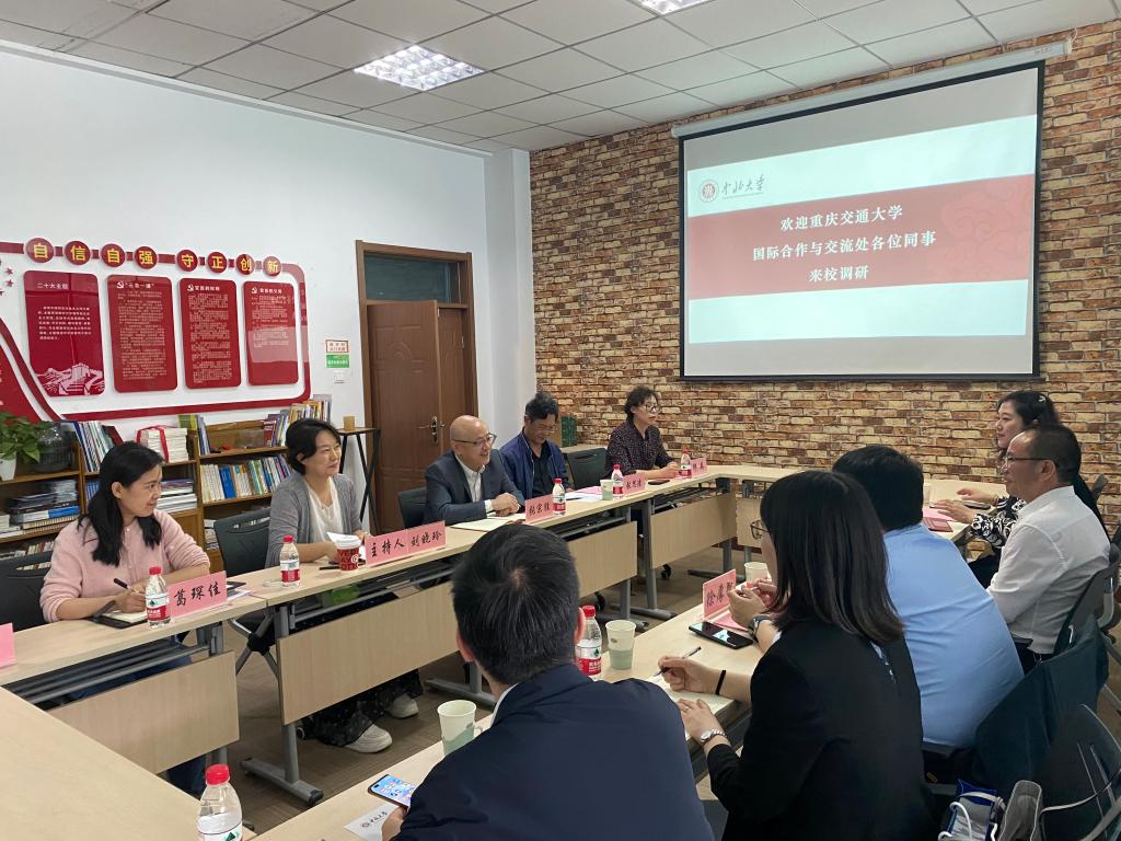 2024年5月10日下午,重庆交通大学国际合作与交流处毛明勇处长一行来访我校国际教育学院,就国际化办学及工作思路、国际交流项目管理、外籍专家及海外引智项目管理等议题展开了座谈。国际教育学院张宗胜书记、张思洁副院长、刘晓玲副院长及相关科室负责人参加了座谈会,座谈会由刘晓玲副院长主持。