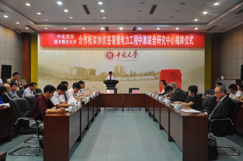 6月30日,澳大利亚纽卡斯尔大学常务副校长KEVIN HALL一行莅临我校,在主楼十五层会议室召开座谈研讨会,与我校签署了合作框架协议,并为新成立的电力工程中澳联合研究中心揭牌。山西省委统战部副部长、省海外联谊会常务副会长张云泽,省教育厅党组成员、副厅长孙世新,太原钢铁集团有限公司党委副书记王新平,校领导陶功定、刘有智以及省委统战部、省教育厅相关领导参加了研讨会。我校副校长白培康主持会议。