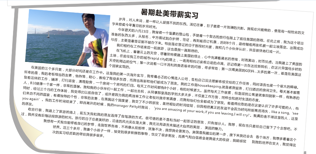 赴美社会实践项目在中北大学已成功运行8年,有100多名同学参加项目,并获得中北大学实习学分和创新学分。参加项目学生有的申请到国外名校读研,有的申请到大公司工作机会,境外社会实践的经历无疑令他们在竞争中脱颖而出。