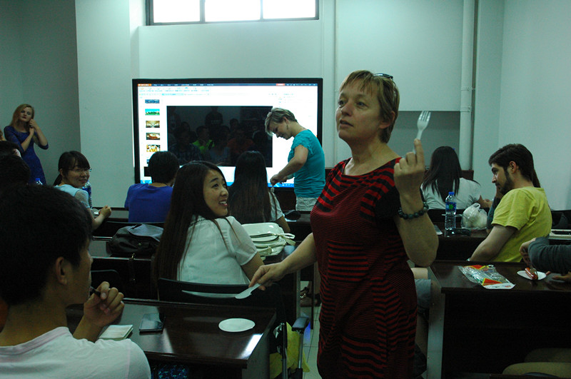 活动前波兰外教Ela播放了介绍波兰的中文视频,极大的引起了同学们的兴趣。活动伊始,热情的波兰男生为大家介绍了波兰的风土人情,根据他们的介绍以及视频的内容,美丽的波兰女生们进行了有奖问答环节,同学们积极参加了此项活动。之后Ela又播放了介绍波兰学习环境的视频,接着为同学们介绍了刀叉的使用方法,并邀请同学们进行了尝试,现场气氛活跃。在活动最后,外教及留学生们与同学们进行了面对面的交流。