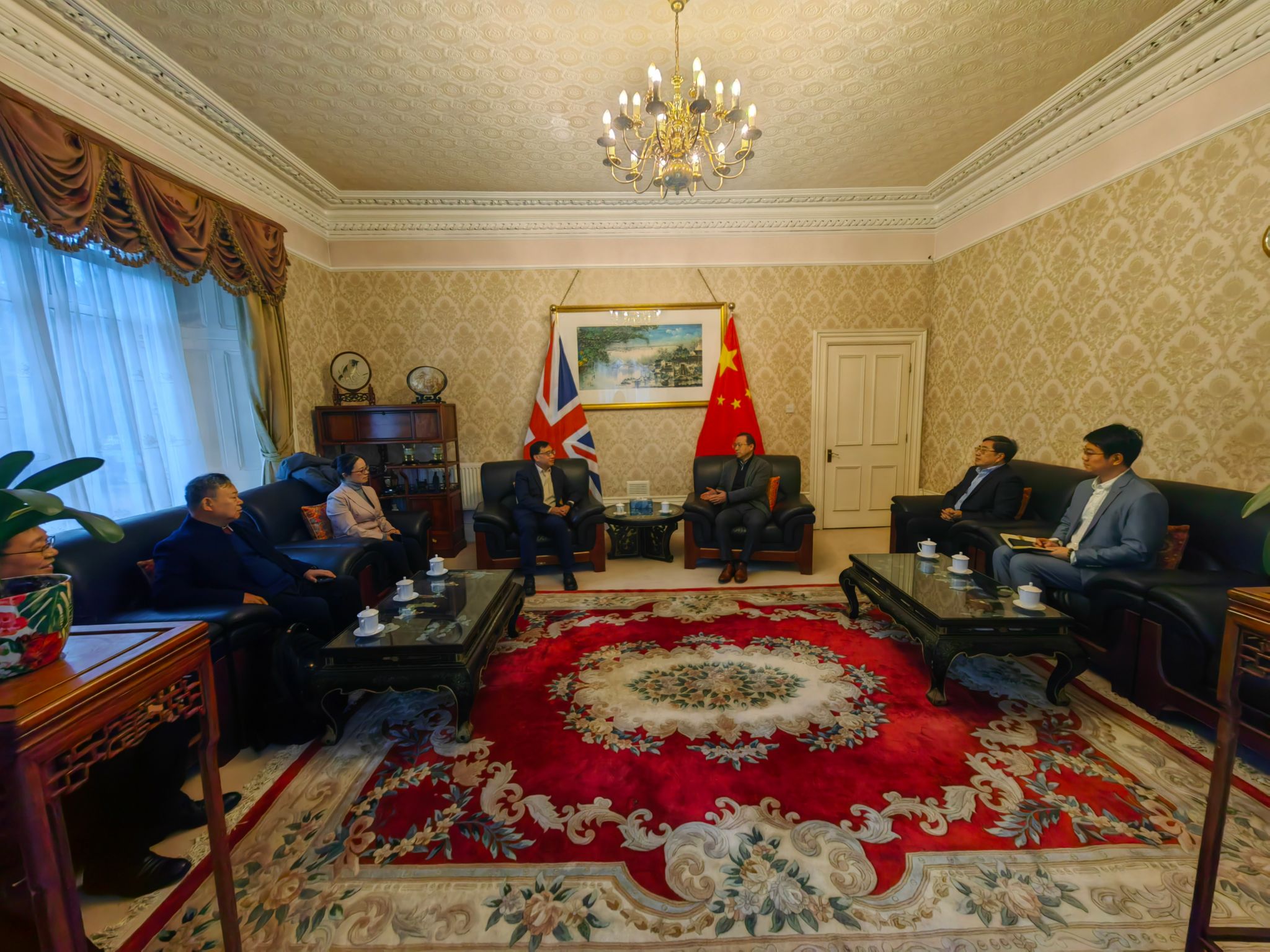 唐锐总领事对陈校长一行表示热烈欢迎,指出国际交流合作与教育要在发展与安全的框架下切实展开、合作共赢。合作办学要注重课程培养方案设计,稳步推进,切实展现国际教育的特色和成果。建议充分利用英国在清洁绿色能源领域研究成果,联合推动中北大学在山西省能源转型发展战略中发挥更大作用。最后,唐总领事表示馆区有三十余所英国大学,在校际国际合作方面会提供必要的帮助支持。
