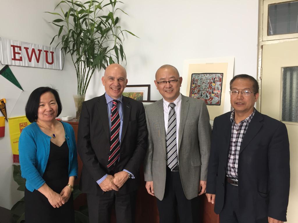 2016年5月17日,英国阿斯顿大学(Aston University)商学院副院长 Geoff Parkes博士、国际项目发展官员Junying Jia博士等一行4人来校访问。国际交流合作处张宗胜处长、经济与管理学院王文寅院长在国际交流合作处会见了英国客人,并进行了会谈。