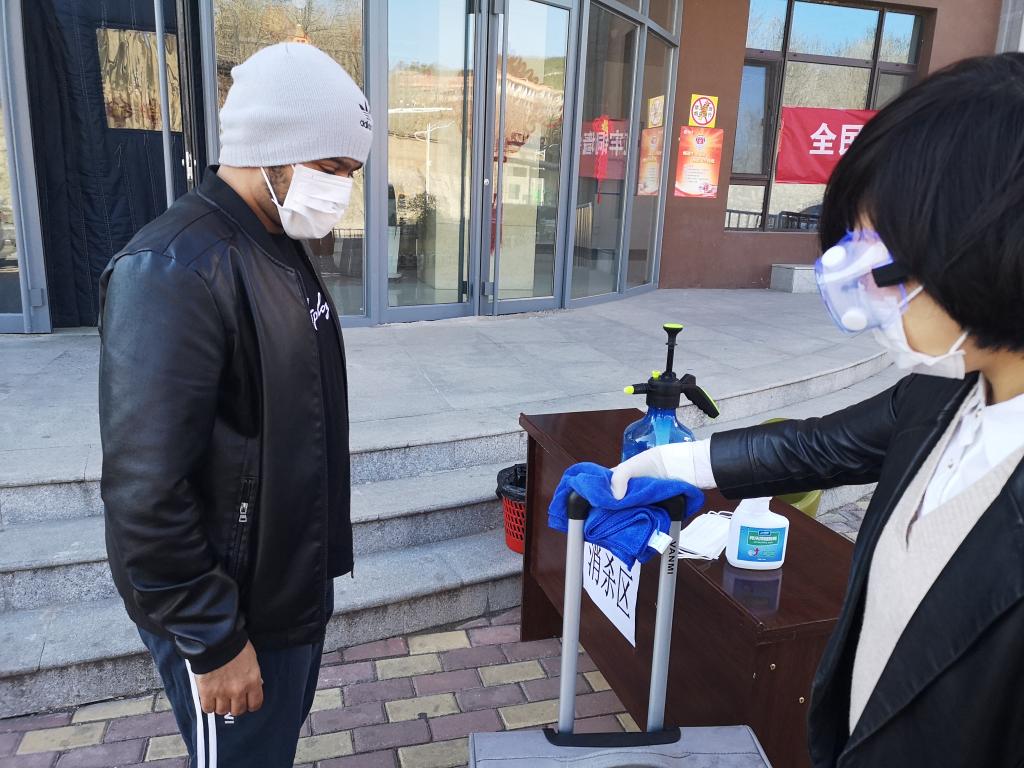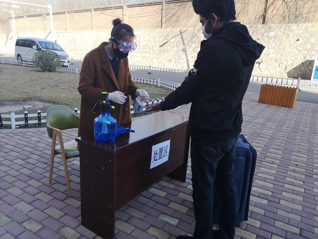 3月22日,为进一步加强疫情处置能力,检验防控预案的科学性和可操作性,为随时确保安全开学做好准备,根据学校统一安排部署,国际教育学院组织了学生报到期间疫情防控应急处置演练。演练在留学生公寓举行,设置了待检区、检测区、处置区、消杀区、报到区、入住引导区(进公寓)等六个组,从学生入校抵达留学生公寓开始,分别完成体温检测、手和行李消杀、身份核验登记和防疫物品分发、入住和隔离等流程,并对体温异常者进行复检和报告。工作人员全副武装,全程佩戴口罩,物资设备充足,整个过程严谨规范,安全可控,为顺利开学做好了准备。全体教职工和部分留学生参加演练。