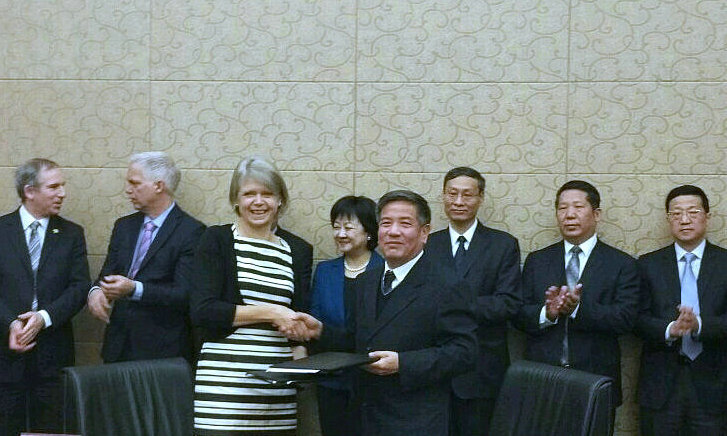 2016年10月13日上午,山西高校与英国阿斯顿大学交流洽谈会在山西大学会议中心举行,十所省内高校的校长、副校长和相关负责人与英国阿斯顿大学副校长Helen Griffiths教授一行六人就国际交流的合作模式、合作原则及各校的优势学科、合作领域、合作方式等进行了深入的交流。山西省政协副主席李悦娥、省教育厅副厅长李青山出席,会议由省教育厅国际合作与交流处李易青处长主持。曾建潮副校长代表我校与阿斯顿大学签署了谅解备忘录。