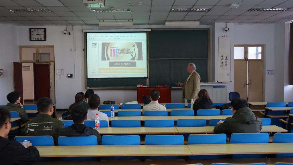 随后,在11212H教室,英国德比大学商学院国际项目主管Marcus Warren和德比大学驻中国办公室代表刘君妍为我校学生做了专场说明会,详细介绍了德比大学及商学院的基本情况,以及申请去德比大学留学的必备条件和申请流程。