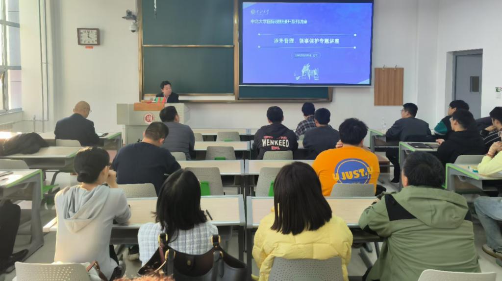 2024年11月22日下午,我校在17403Z教室成功举办中北大学国际视野提升系列讲座之二---师生出国(境)交流学习行前安全教育培训暨涉外管理与领事保护专题讲座。