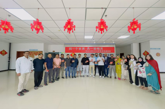 为了让留学生们感受源远流长的中华传统文化,了解中秋的历史底蕴和文化情怀,营造浓郁温暖的节日气氛,国际教育学院于2024年9月15日在留学生公寓举办了“同一个世界 共一轮明月”中华文化走出去活动。30多名在校的留学生体验了地方非遗美食和中华传统文化,提前感受中秋“团圆味”。