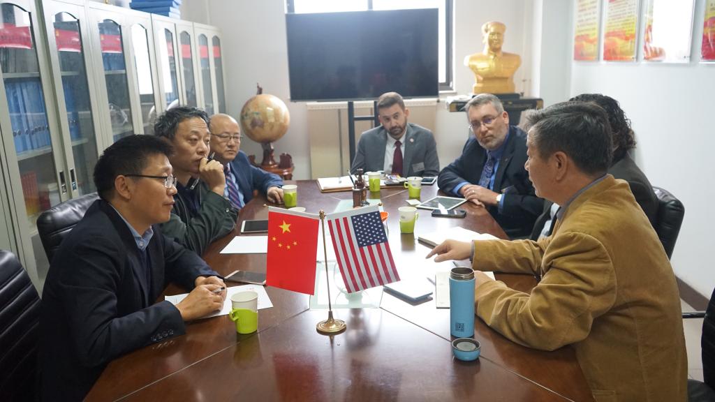 曾建潮副校长首先对Dr. David May一行来访表示热烈欢迎,期待通过此次会面进一步加深两校的合作。Dr. David May对学校的热情接待表示感谢,并表示东华盛顿大学非常重视与中北大学的合作。会上,双方就学生和教师交流、联合培养等合作意向深入交换了意见。